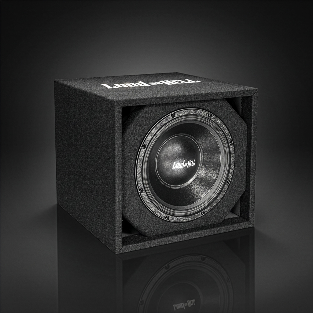 På toppen sitter den broderade Loud as Hell-logotypen – en tydlig markering av att detta är en låda för dig som bygger för att höras. Den rena, symmetriska formen gör att lådorna ser lika bra ut enskilt som i större uppsättningar.