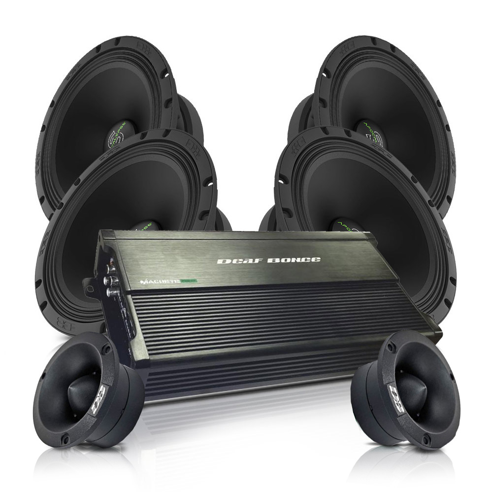 Komplett kraftpaket från DeafBonce med 4 st 6,5" midbasar, 2 st diskanter och ett 4-kanals minislutsteg.