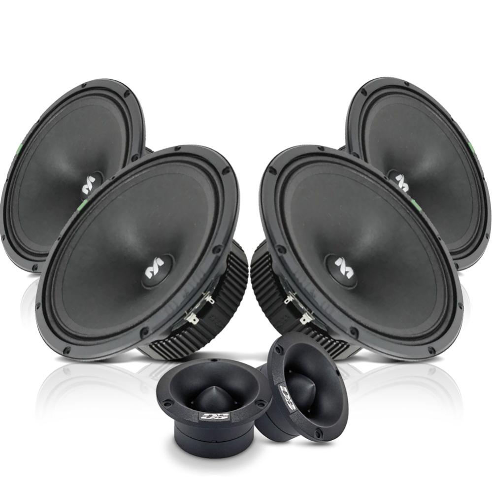 Machete MM-80F Kit är ett kraftfullt paket för dig som vill ha ett starkt och tydligt mellanregister kombinerat med kristallklar diskant. Med två par DeafBonce MM-80F midrange-högtalare och ett par Deaf Bonce diskanter får du en optimerad ljudupplevelse för kraftfulla och dynamiska ljudsystem.