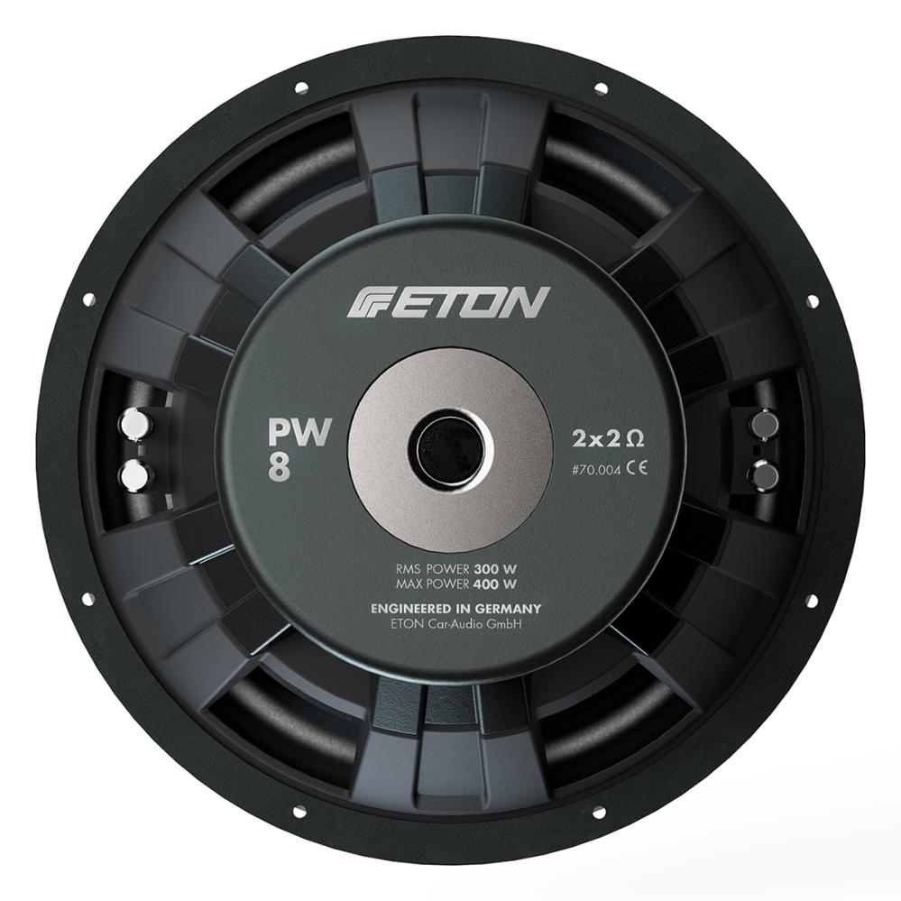 Den minsta i gänget - 200 mm (8") subwoofer med pressat, förstyvat och bestruket pappersmembran, extremt starka ferritmagneter med stort centrumhål för optimal ventilation. Den nyutvecklade metallkorgen har 3D-designats för optimal styvhet Den stora 2 x 2 ohm dubbla talspolen är extremt motståndskraftig, 300W RMS klassad effekthantering och 400 W musikeffekthantering och en verkningsgrad på 81 dB talar för sig själv. Chassit på 4,6 kg är skyddat av ett specialutvecklat silikonskydd PW-serien står för kraft - hård kickbas och extremt låg frekvensrespons, en subwooferserie som har allt!
