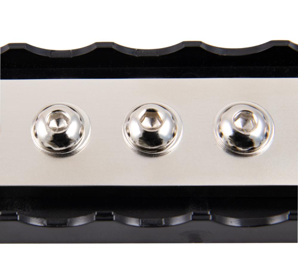 Rälsen har 8 st 8 mm bultar där du kan fästa ringkontakterna. Kablarna kan förs in i stången från båda sidor (även mot varandra samtidigt) tack vare den öppna strukturen på locket. Genom hålen i ändarna kan rälsen säkert fästas på plats.