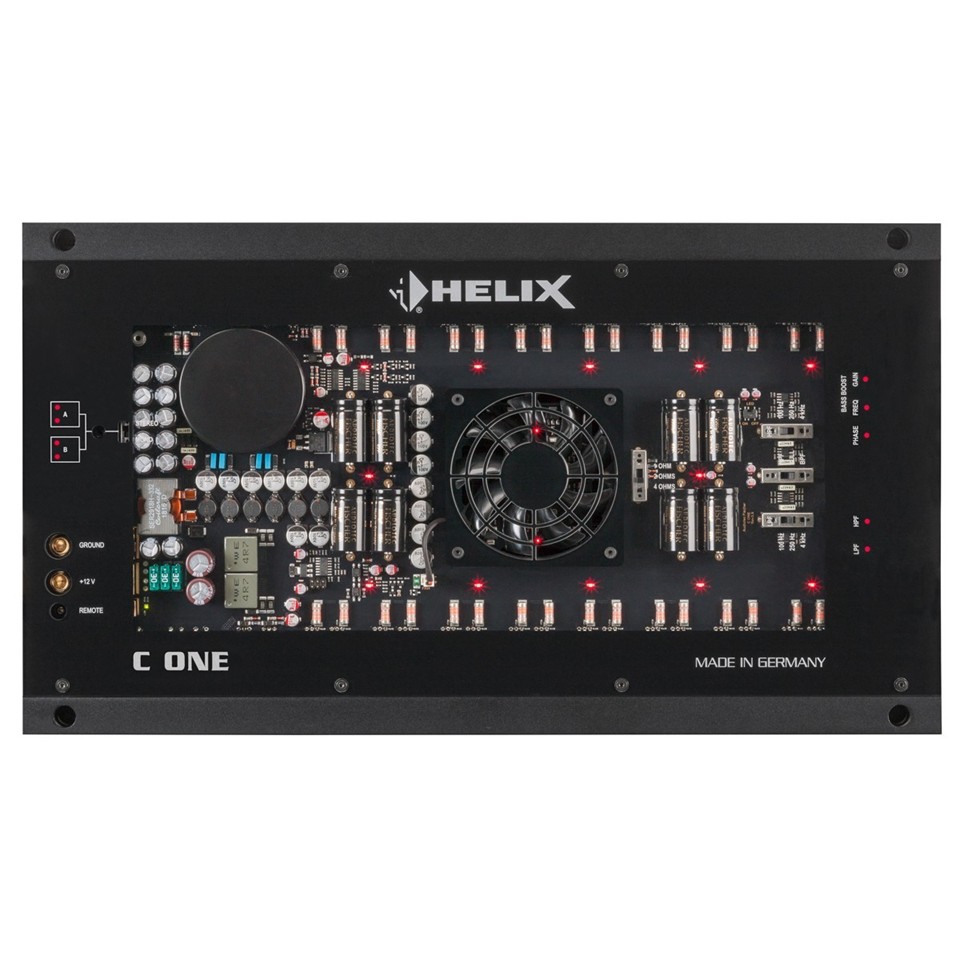 HELIX C ONE är ett high-end monoblock byggt för att driva även de mest kraftfulla subwoofers med full kontroll. Den extremt lågnivåiga och distorsionsfria Class A-drivsteget matar hela 32 handplockade MOSFET-transistorer, vilket ger ett otroligt dämpningsfaktor på 1000 – för kompromisslös styrning av varje högtalarelement.