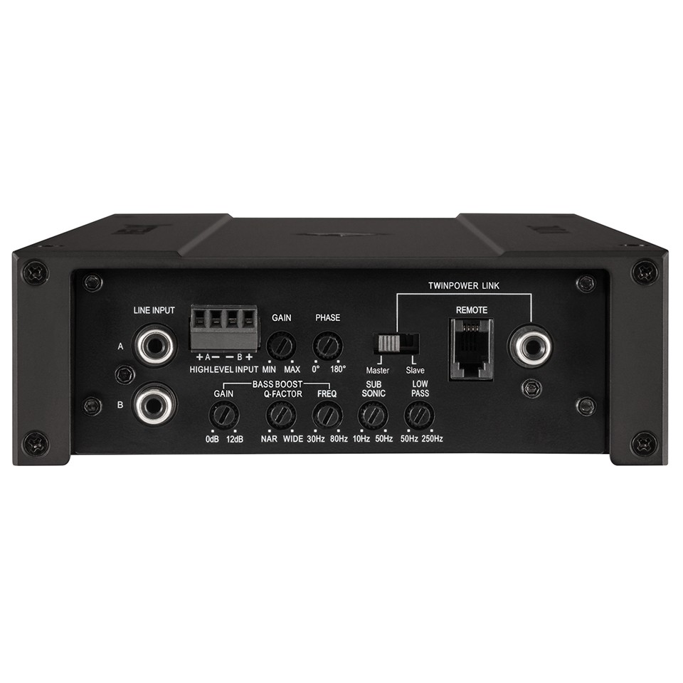 M ONE X – 24V Edition är ett ultrakompakt Class D-monoblock som levererar stadig kraft och hög effektivitet i 24-voltsmiljöer. Med upp till 1 030 W RMS vid 1 Ohm (max. upp till 1 180 W RMS @ 1 Ohm) driver det tung bas med stor kontroll och låg värmeutveckling. Tack vare den höga strömkapaciteten passar det perfekt till 2 x 2 Ohm-subwoofers kopplade parallellt – och med TwinPower Link kan två steg länkas till ett enda kraftpaket.