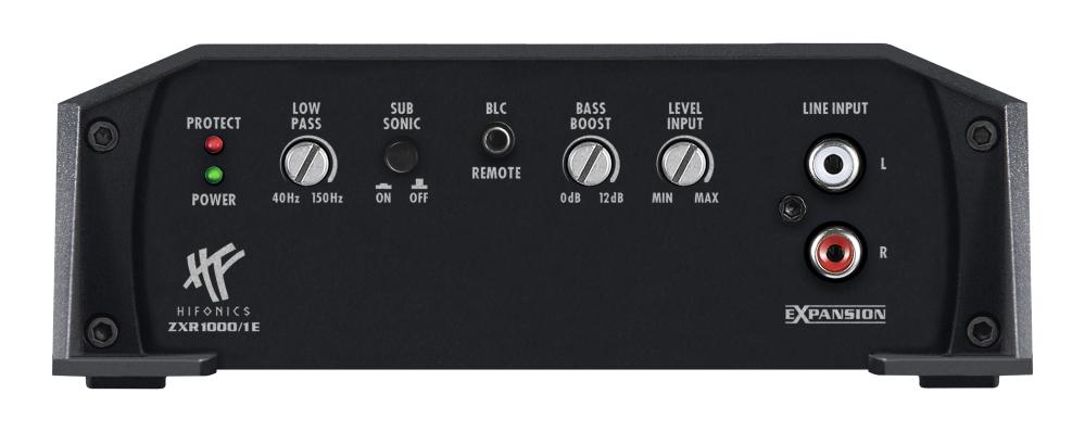 HiFonics erbjuder nu tre sådana ZXR/E-modeller med fjärrstyrd baskontroll och uteffekter på 750, 1000 och 1500 watt RMS, kapabla att driva även stora subwoofers. Tack vare de senaste Infineon®-chipseten uppnås en extremt hög verkningsgrad på upp till 92 %. De drar därmed mindre ström och skonar fordonets elsystem. Den idealiska kombinationen är monoblocket tillsammans med den 8-kanaliga DSP-förstärkaren ZXR800/8DSP från samma designlinje, som har en 10-kanalig DSP med Bluetooth-styrning. Ansluten via RCA levererar ZXR/E-monoblocket den perfekta basgrunden.