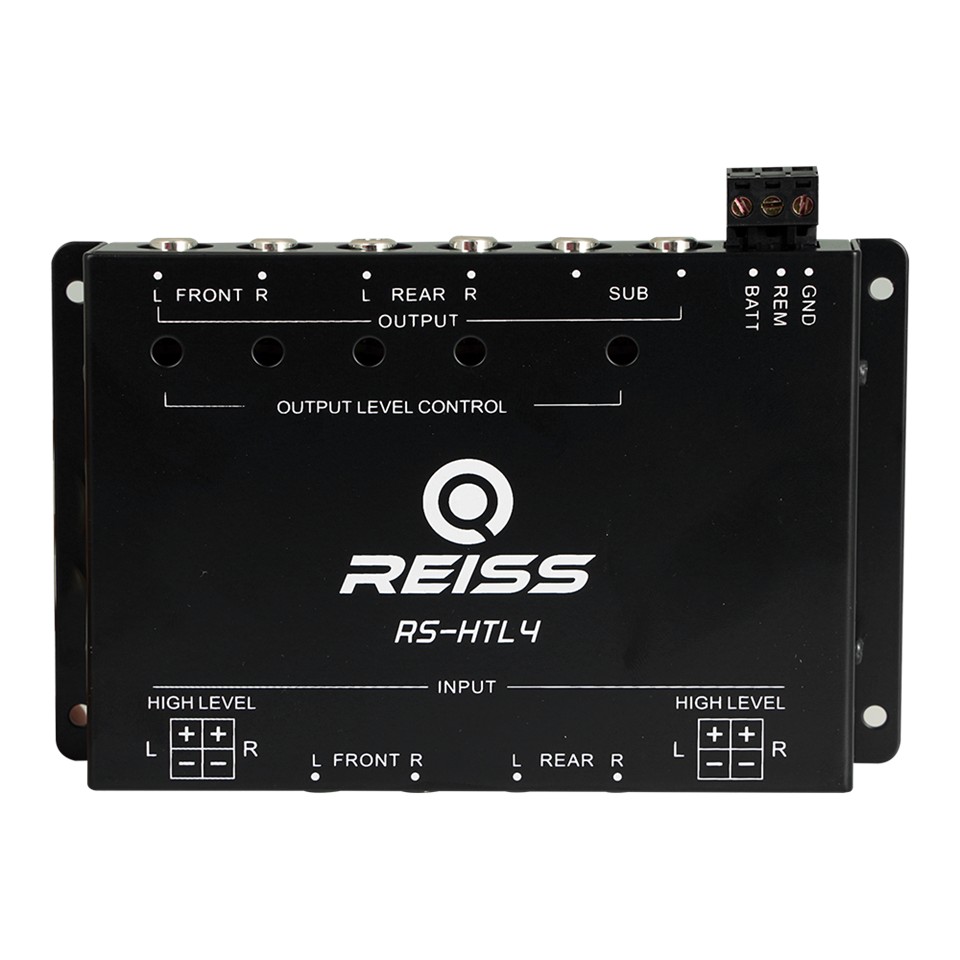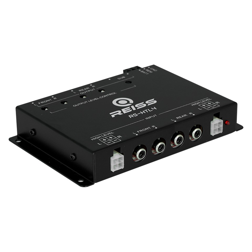 Reiss RS-HTL4 är en 6-kanals high/low-konverter utvecklad för att koppla in eftermarknadsförstärkare till originalbilstereo. Den har både 4-kanals RCA-ingång och 4-kanals högnivåingång, samt justerbar utgångsnivå upp till 7V för optimal signalstyrka. Perfekt för dig som vill uppgradera bilens ljudsystem utan att byta huvudenhet.
